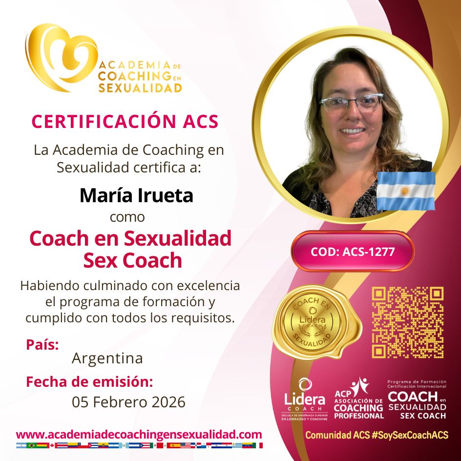 – COACH EN SEXUALIDAD, SEX COACH, en fecha 05 de Febrero de 2026 con número de certificado LC-2535CS emitido por LIDERA COACH® Escuela de enseñanza superior en Liderazgo y Coaching.